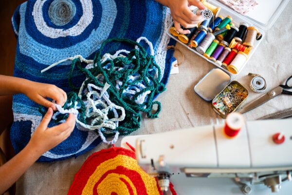 Gemeinsam entdecken wir, wie wir aus unserem Altkleiderberg Neues und Kreatives entstehen lassen können.